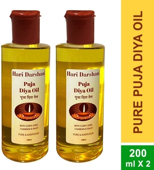 Hari Darshan Puja Diya Oil | Specially Made up with Cow Ghee and Sandalwood with Haldi Pack of 2(200ml X 2)