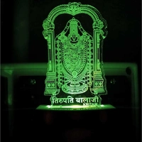 KRITAM Tirupati Balaji 3D LED Night Lamp Home Decor Acrylic Corporate Gifts 7 colour changing divine small wall lamp Illusion night light Pooja room festival Mandir Night Lamp Table Lamp